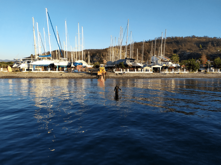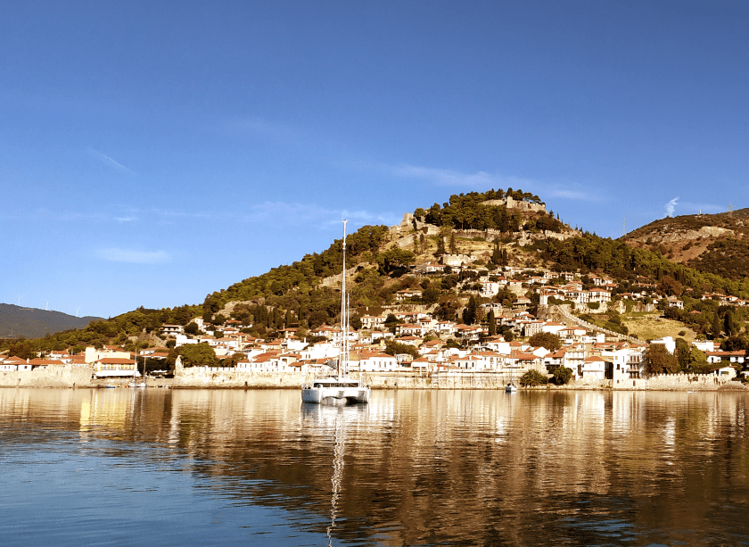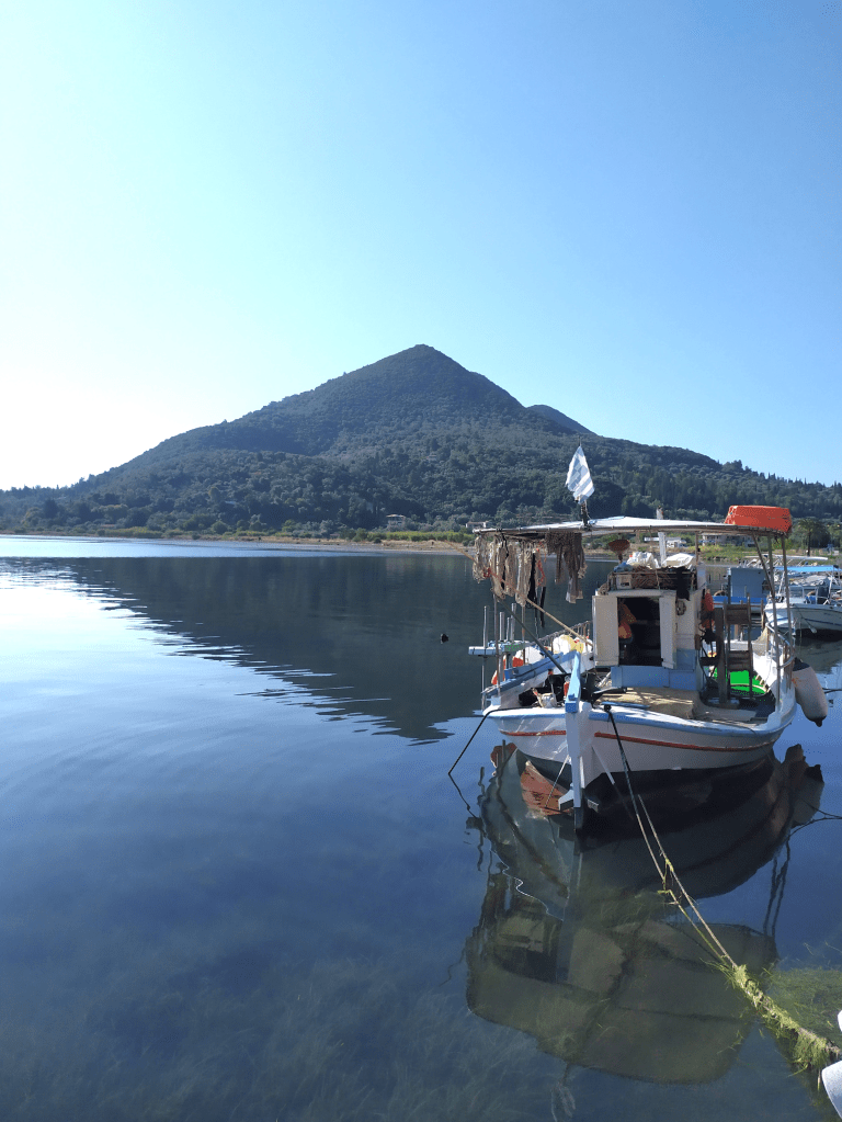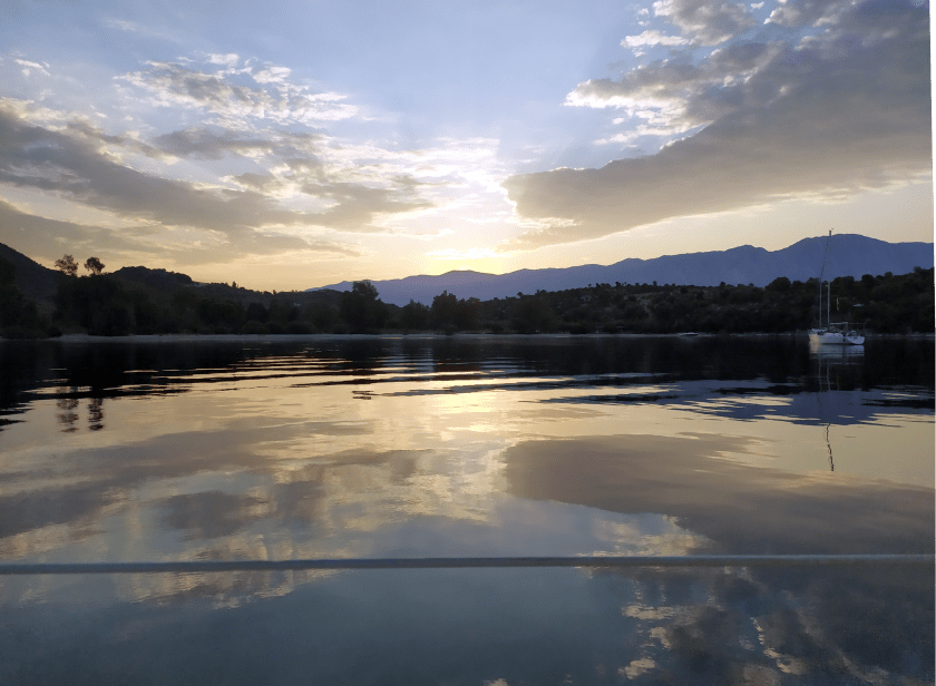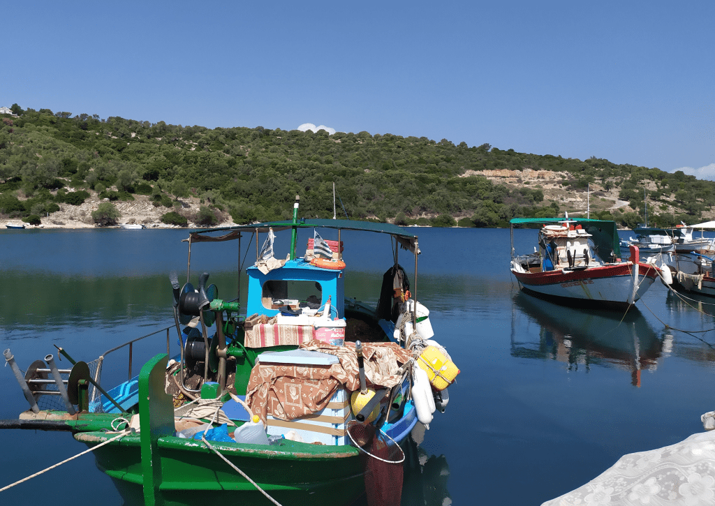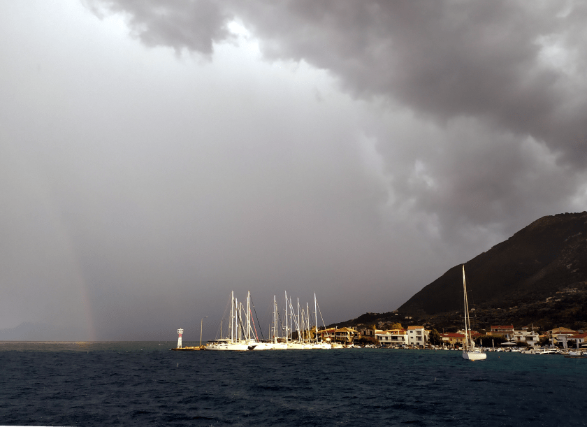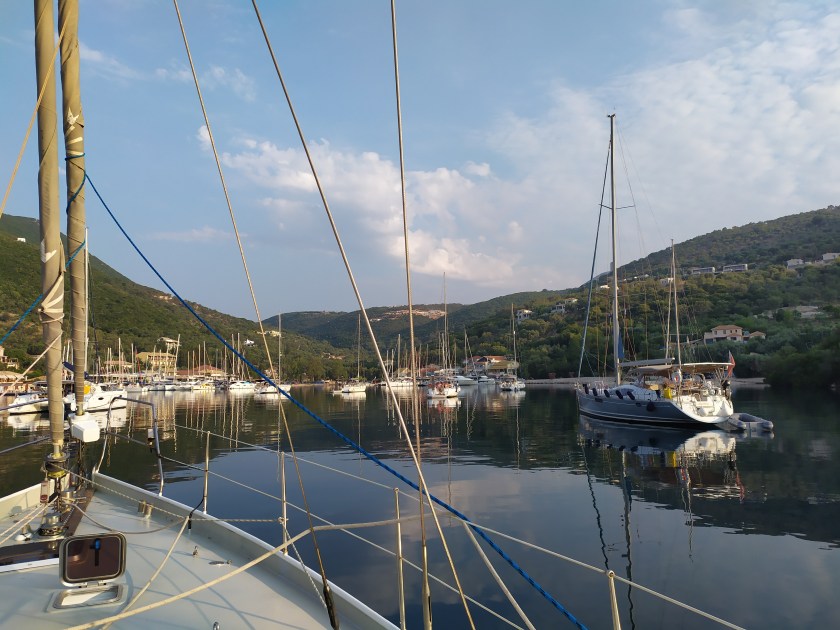 Kaum riecht das an Bord endlich mal nach „frisch gewaschen“ verdrücken wir uns nach Ormos Plateos, kurz um ein Kap rum an der Südwestspitze von Limnos. Nach ´n paar Tagen wird der Meltemi übermütig, die Windsurfschule macht Pause und Sousa muss ihr Geschäftchen auf meinem Deck erledigen. Meine Crew checkt die Wetter App, am nächsten Tag soll das noch stürmischer werden, und zwei Wochen lang so bleiben. Segelurlaub ohne Baden? Mit sturmzerzaustem Haar in der Plicht hocken? Das soll unserem Besuch erspart bleiben, ich werd´ klargemacht zum Anker lichten.