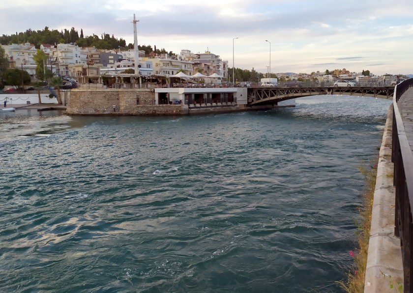 In Ouranopoli, am östlichen Finger, gegenüber von Drénia, steigt unser Besuch in den Bus nach Thessaloniki. Der nächste Besuch kommt, diesmal aus der Pfalz, das geht gesellig zu an Bord, Sousa sammelt Streicheleinheiten. Wieder Südwind, wir huschen zur Insel Diaporos im Nordosten des mittleren Fingers, fliehen gleich am nächsten Tag vor der Mietmotorbootinvasion zurück nach Drénia, wo die Tochter vom Käpt´n beim Landgang bald mit alten Bekannten von Sousa Klönschnack hält. Die wenigen Mietmotorboote, die von Ouranopouli nach Drénia rüberkommen, stören kaum, wer nach Ouranopouli fährt, hat anderes im Sinn, als ein Boot zu mieten, Tag für Tag spucken Reisebusse massenweise Pilger aus, die zum Berg Athos streben. Pilger, keine Pilgerinnen, Frauen haben keinen Zutritt zu der Mönchsrepublik unter griechischer Souveränität und ihren zwanzig in Fels gebauten, orthodoxen Klöstern.