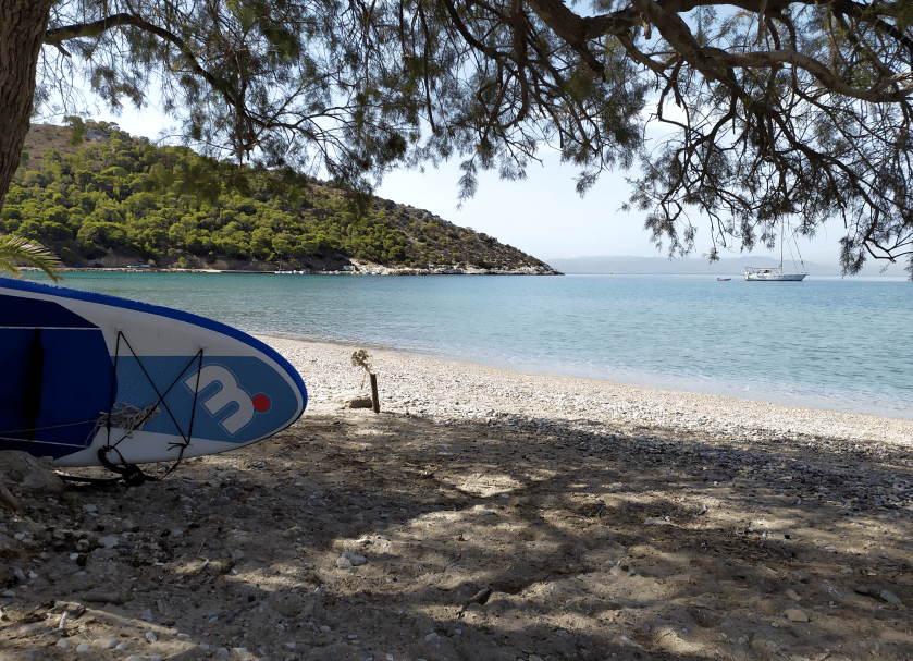 Unsere Freunde aus Pamplona erweisen sich als Wasserratten, übernehmen zwischen Paddelboardtouren, Landgängen mit Sousa und genüßlichem Plantschen im Meer das Regime in der Kombüse und verwöhnen meine Crew; meine Ruthie schreibt entspannt an ihrer Drachengeschichte, die sollte lieber von meinen Abenteuern berichten.