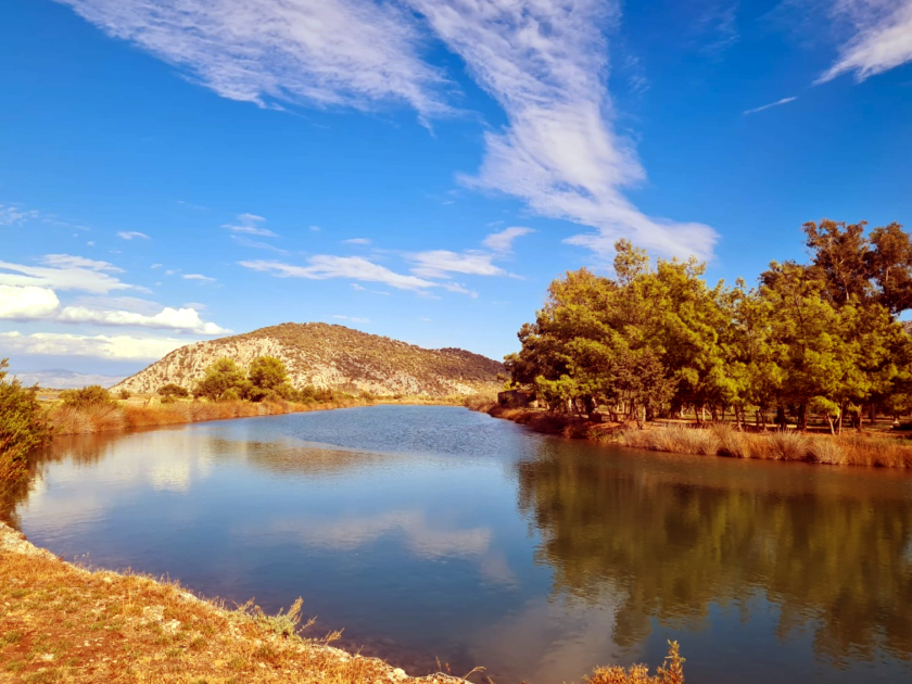 Mein Anker fällt in ´ner abgeschiedenen Bucht, jenseits vom Strand leuchten Weizenfelder in der Nachmittagssonne, erstrecken sich über sanfte Hügel bis ins Inselinnere. Beim Landgang stakst Sousa zwischen Stoppeln rum und der einzige Weg den Hügel hoch endet bei ´nem Bauernhof; nach ´ner Mütze Schlaf verlassen wir Ormos Kokkina, tuckern in der morgendlichen Windstille gemütlich an der Südküste lang ostwärts und bald in die weite Bucht von Moudros, wo Muscheln und Krabben sich besonders wohl fühlen. Das trübe Wasser is´ recht warm, da freut mein Käpt´n sich über, bis er am nächsten Morgen Schaum und Unrat vorbeitreiben sieht.