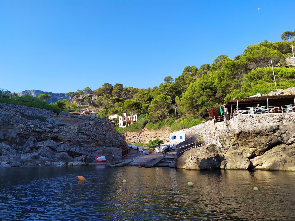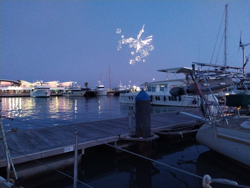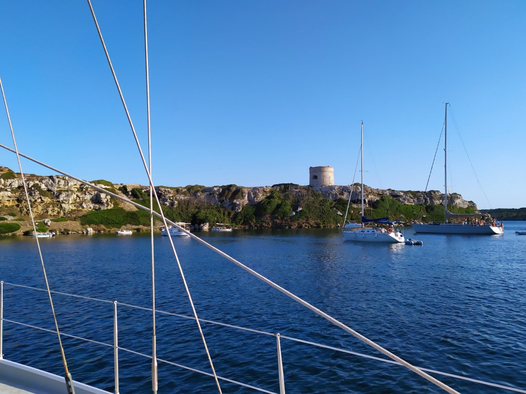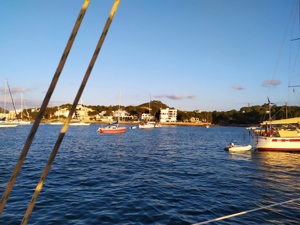 Mein Anker fällt im Morgenlicht. Das Meer ist klar und frisch. Mein Käpt´n macht Wasser. Es ist hier gar nicht so übel. Helle, rundliche Felsen am Ufer. Struppige, schon bräunlich verfärbte Macchia. Baumgrün vieler Schattierungen. Sträucher, und vereinzelt gelb oder weiß blühende Büsche. Schlanke Palmen und junge Zypressen, hinter denen sich Bahngleise und eine Autobahn verstecken. Hier und dort Häuser und wenige Menschen am hellbraunen Kiesstrand. Und keine Strandbar weit und breit, die unsere Bordmusik übertönt.