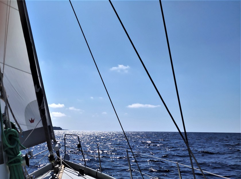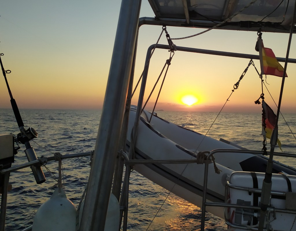Fast zwei Tage lang traut meine Crew sich nich´ mal mehr, das Brotmesser in die Hand zu nehmen. Eigentlich wollten wir ja bei den Egadischen Inseln, im Nordwesten von Sizilien, einen Stop einlegen. Da rauschen wir aber dran vorbei und lassen Favignana an Backbord liegen. Vor Anker in ´ner Bucht dort hätte meine Crew sicher keine ruhige Nacht. Die beiden überlegen, was es zum Abendessen geben könnte, denn sie haben mittlerweile die große Schüssel Reissalat und die Kartoffeltortilla aufgefuttert. Da wird das doch tatsächlich auf einmal ruhig genug, um ein paar Stullen zu schmieren.