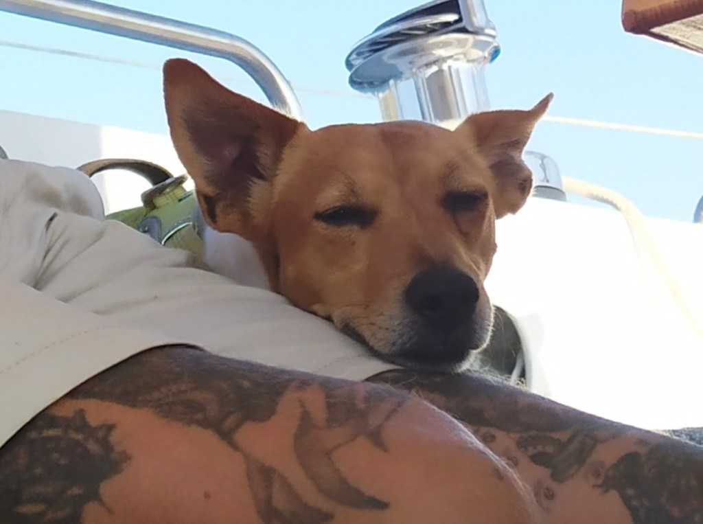 Wir bleiben nur wenige Tage. Ein letztes Mal Pizza, und mein Anker wird gelichtet. Doch da hängt´n halber Schrottplatz dran. Außerdem Netze und altes Tauwerk. Mit Leine, Ankerwinsch, Messer und Geduld macht mein Käpt´n sich ans Werk. Fast ´ne Stunde braucht das, bis wir den ganzen Schiet los sind.