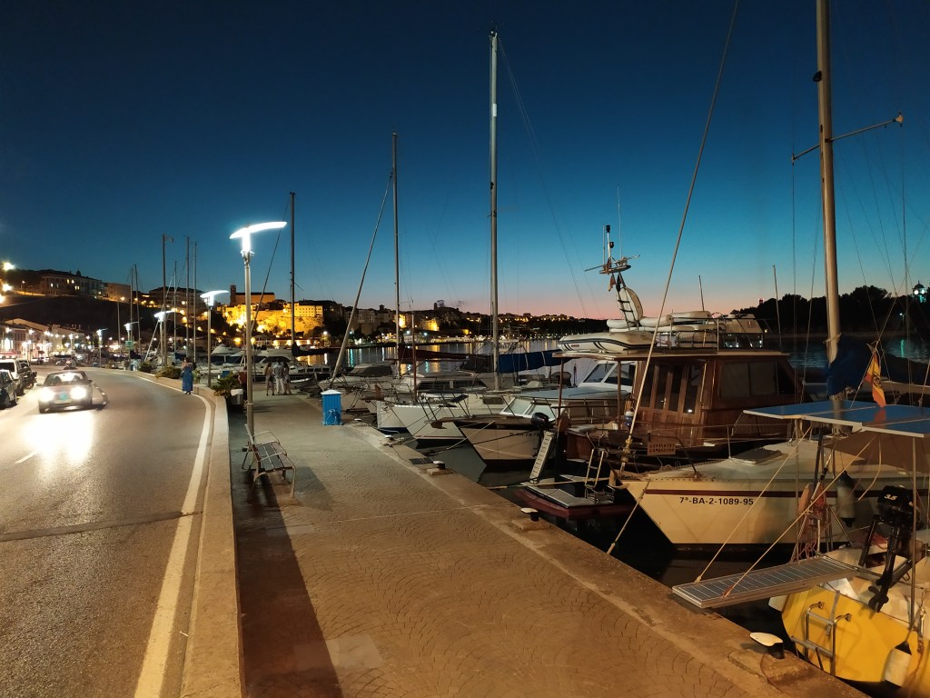 Das erste maltesische Abendessen ist köstlich! Büsch´n arabisch, büsch´n Meze, und ´n Tick britisch. Als die Imqaret mit Vanilleeis verputzt sind, steht eine filigrane Mondsichel über der Lagune. Für den Rückweg durch den Höhlentunnel hat meine Crew natürlich ´ne Taschlampe dabei. Die dient zudem als Positionslicht. Falls man doch mal auf ein anderes Boot trifft in der Nacht.